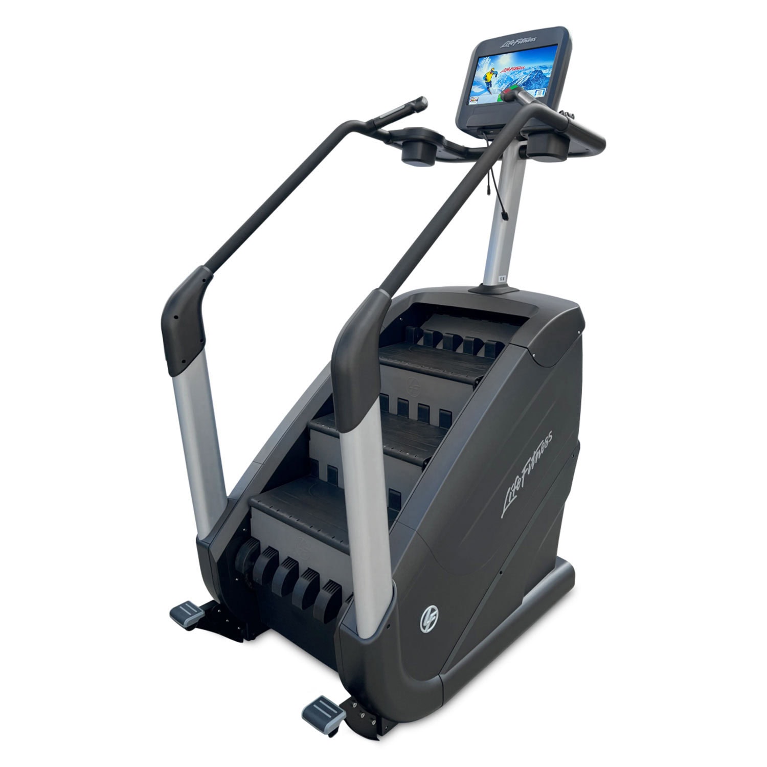 The Life Fitness Elevation Series PowerMill Climber Discover SE is a premier, commercial-grade stair climber engineered to deliver one of the most challenging and effective lower-body workouts in the industry. Powered by the SureStepSystem™ technology, it utilizes a high-performance AC motor to ensure smooth, rhythmic motion regardless of the user’s weight or speed. Unlike traditional “floating” step machines, the PowerMill offers a massive usable step surface, providing extra security and confidence during high-intensity climbing sessions.
