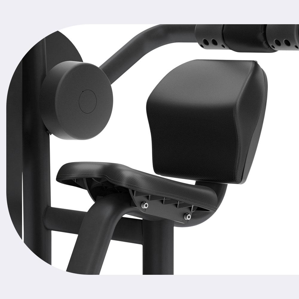 Backrest & Seat: The Bioseat is anatomically shaped to stabilize the pelvis, ensuring the movement is driven entirely by the abdominal wall.