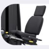 Backrest: Gas-assisted adjustment for depth to align the knee with the machine’s pivot point.