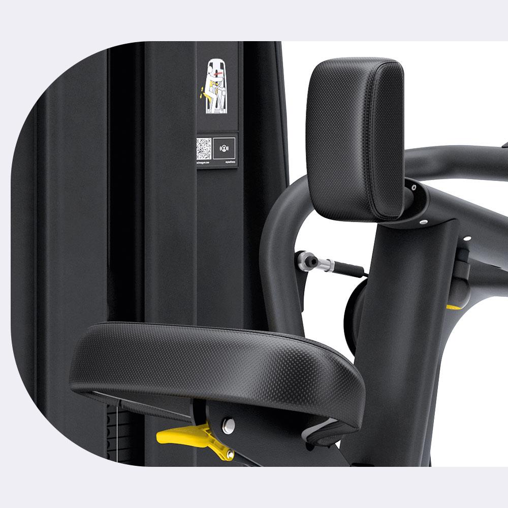 Technogym Selection Pro Low Row este un aparat profesional cu stivă, conceput pentru a viza zona mediană a spatelui, romboizii și marele dorsal. Oferă o alternativă mai stabilă și mai controlată la ramatul tradițional la cablu, având o traiectorie de mișcare divergentă care urmează arcul anatomic natural al corpului.