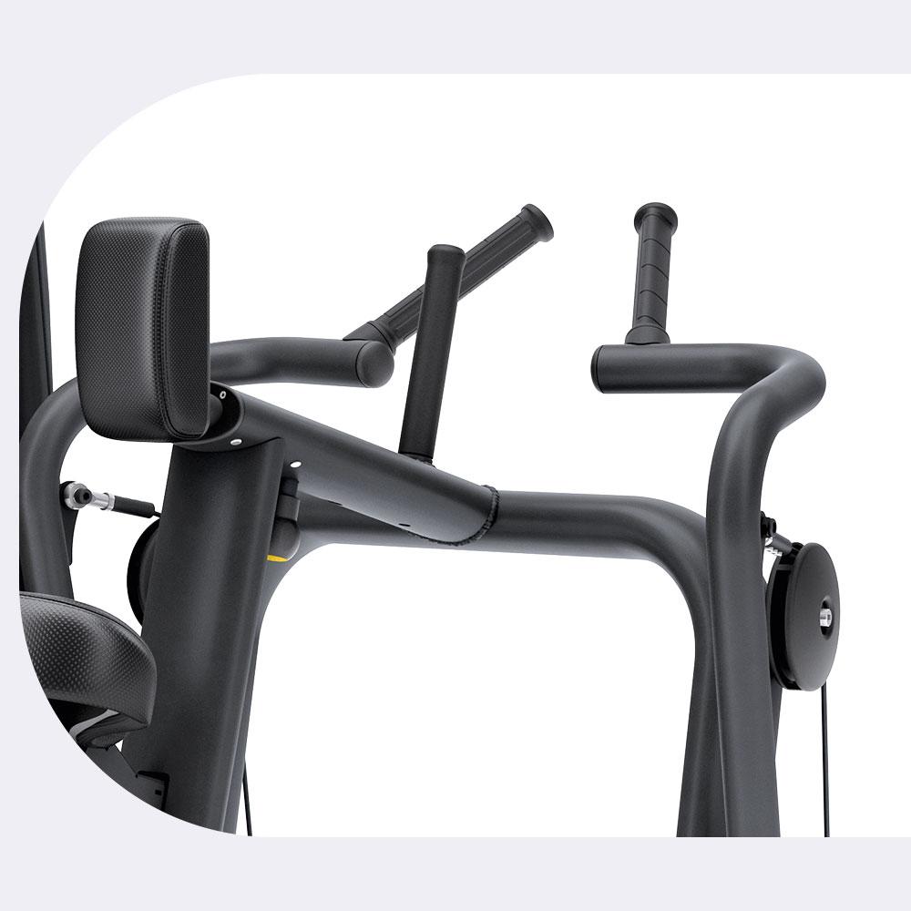 Model de mișcare: Divergent (mânerele se deplasează spre exterior pe măsură ce sunt trase spre corp), reducând stresul asupra articulațiilor umerilor.